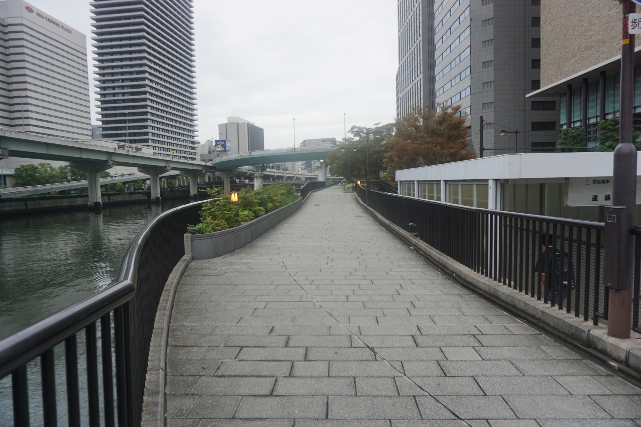 どこからどこまでを言うのかはよくわかりませんが、私の歩いた範囲は道幅もあって平らな石畳の歩きやすい道。周辺は眺めのいい場所だし、むしろちゃんと整備されていないとおかしいかな。大阪のもう一つの顔というべきエリアです。