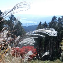 びわこにを遠望、すすきと紅葉、秋の比叡は美しい