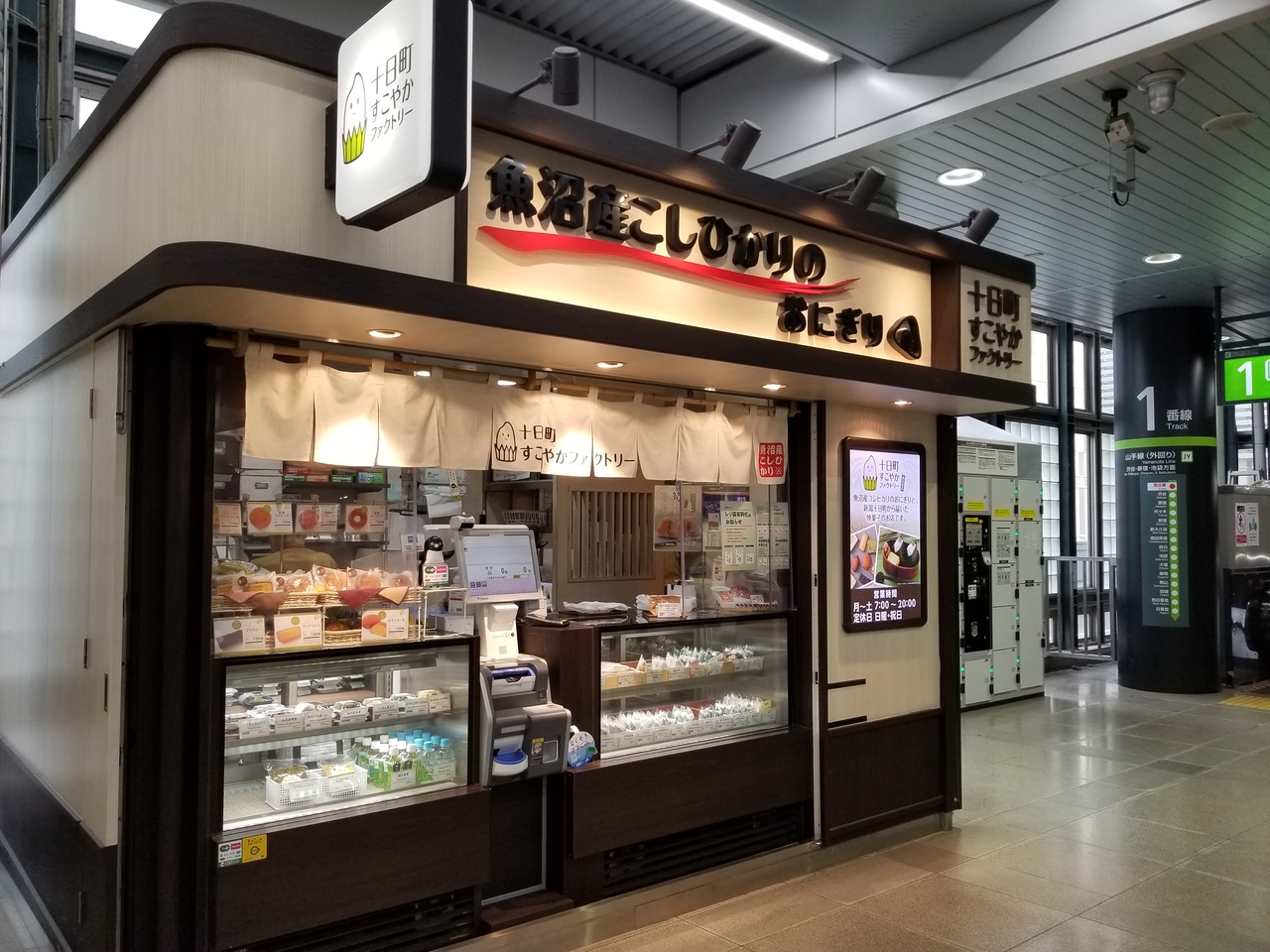駅改札内にあり、魚沼産のおにぎりが購入できるので美味しいオニギリが食べたい時は便利だ。