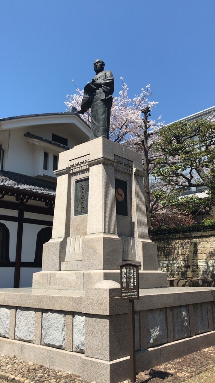 高輪ゲートウェイ駅を見学した後、泉岳寺へ観光に行きました。その泉岳寺の境内にあったのがこの大石内蔵助良雄銅像です。中門を入ってすぐ右側にあり、境内もそれほど広くないのですぐ分かると思います。勇ましい銅像で印象的でした。
