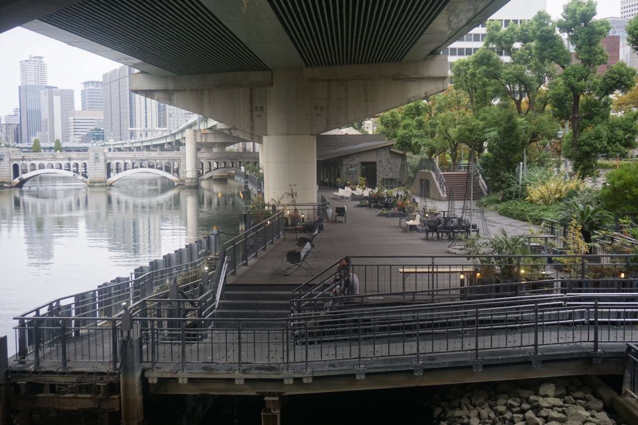 中之島 ラブ セントラルは、堂島川に北側沿いに整備された商業エリア。水晶橋のたもとにあって、ここのテラス席からだと水晶橋が美しく眺められて、水の都、大阪の潤いをどっぷりと感じられる。ただ、施設自体は少し活気がないかな。ロケーションがこんなにいいのに、もったいない感じです。
