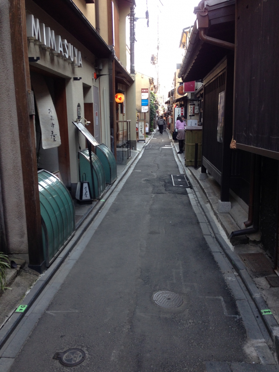 とても道幅が狭い通りなので驚きました。5月になると、鴨川に面したお店は納涼床で食事を頂けると聞いています。新型肺炎の影響で海外からも国内からもお客様が居なくて、通りもお店も空いていて、さみしかったです。