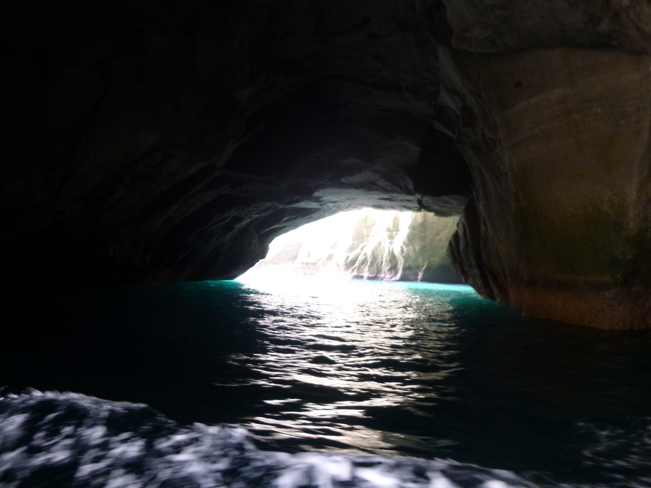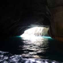 船はスピードを落とし、洞窟へ