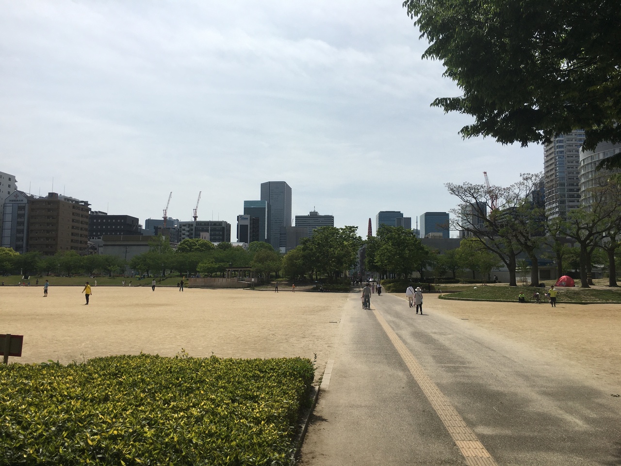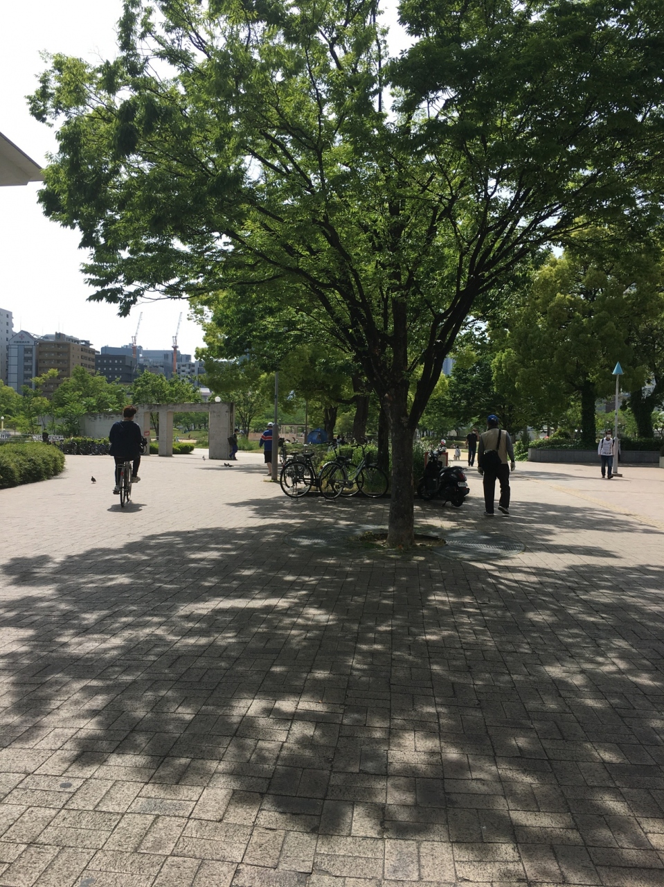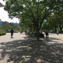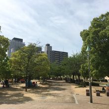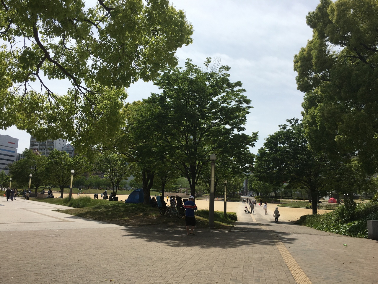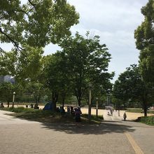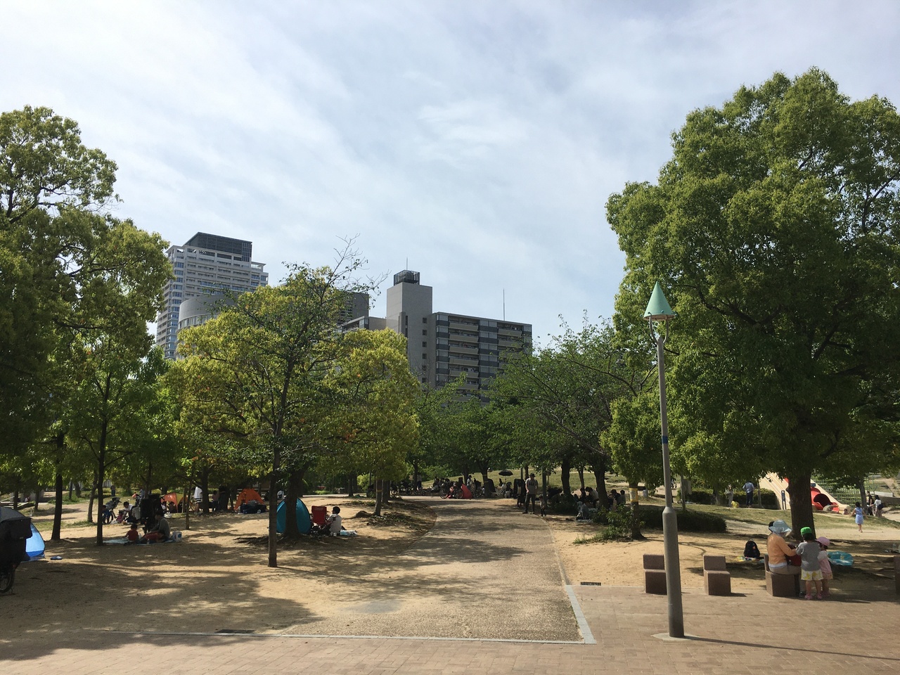 大阪メトロ扇町駅から直結している公園で、プールもあります。木々がところどころ植わっていましたが、グランドのような空間スペースが広かったです。木陰があるのところにテントを張っている人が多かったです。子供の遊戯施設もあります。