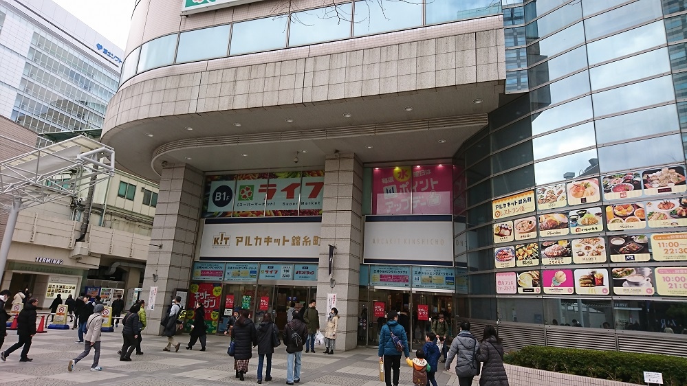 JR錦糸町駅北口駅前にある大規模な商業施設です。以前はそごう百貨店だった建物で、平成14年(2002年)にアルカキット錦糸町としてオープンしました。地下1階から地上11階までショップやレストランが入居していますが、レストランが充実している商業施設の印象です。