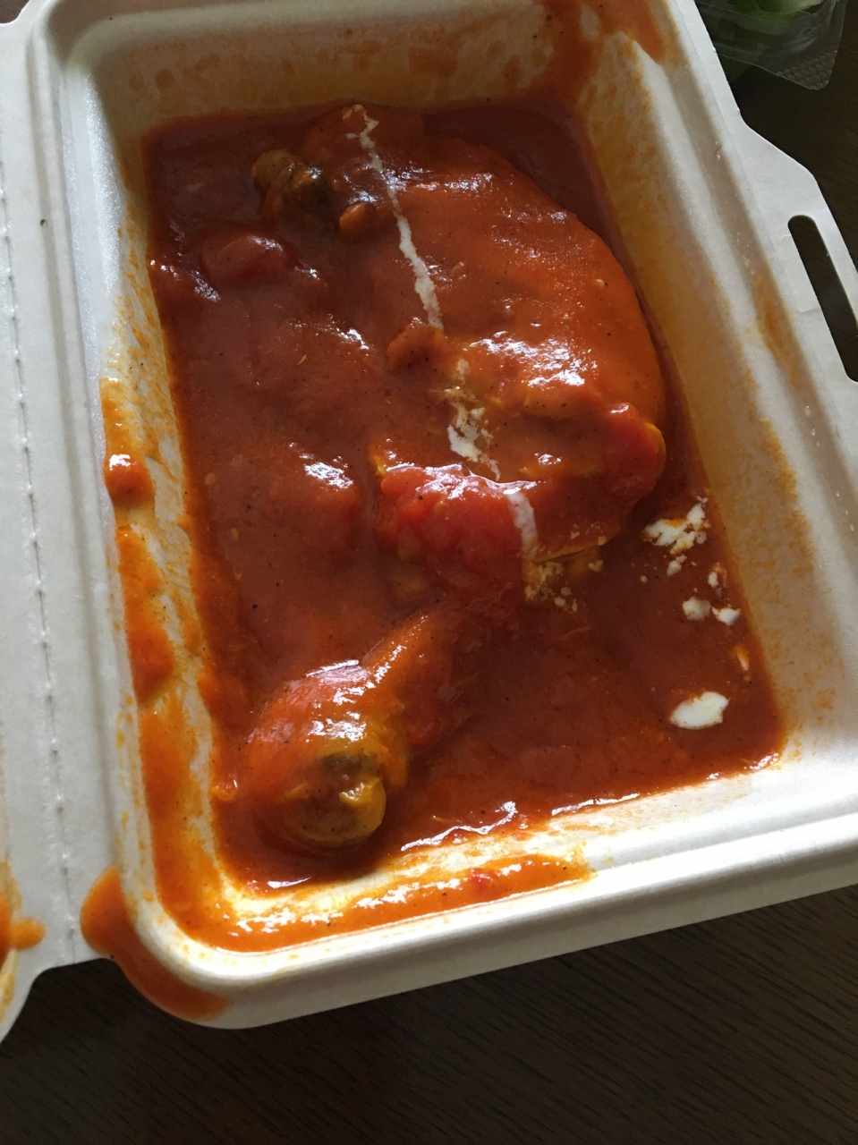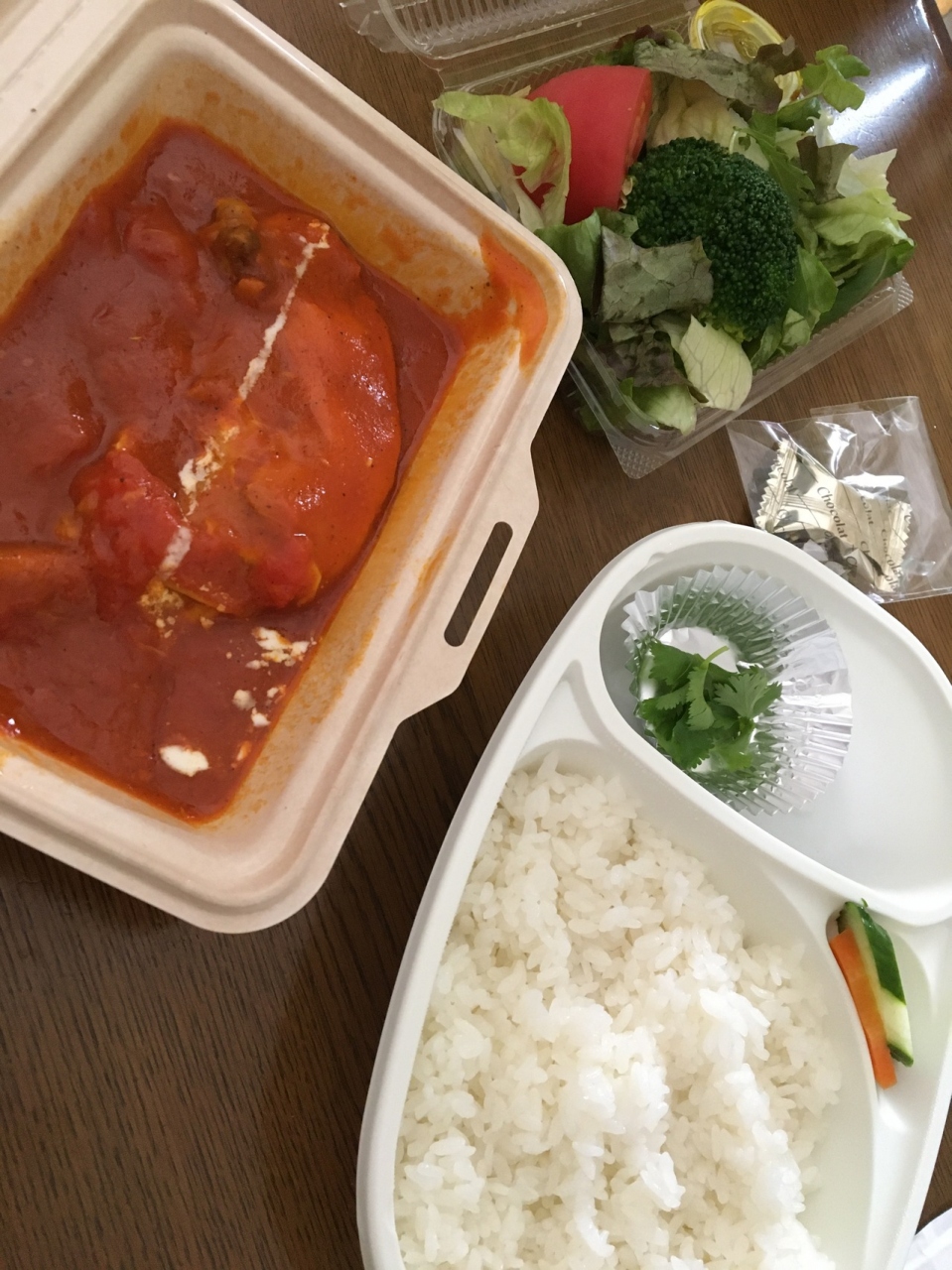 根津駅の近くの不忍通り沿い、ビルの2階にあるネパール料理のお店です。ランチタイムはダルバートがメニューにありますが、テイクアウトはカレーのセットが数種類用意されていました。バターチキンのカレーは骨付き肉が1本どーんと入っていて、ボリュームがありました。追加料金でサラダを付けたら、容器に山盛りで驚きました。店内で頂くときと同様、フェンネルとチョコも付いてきました。