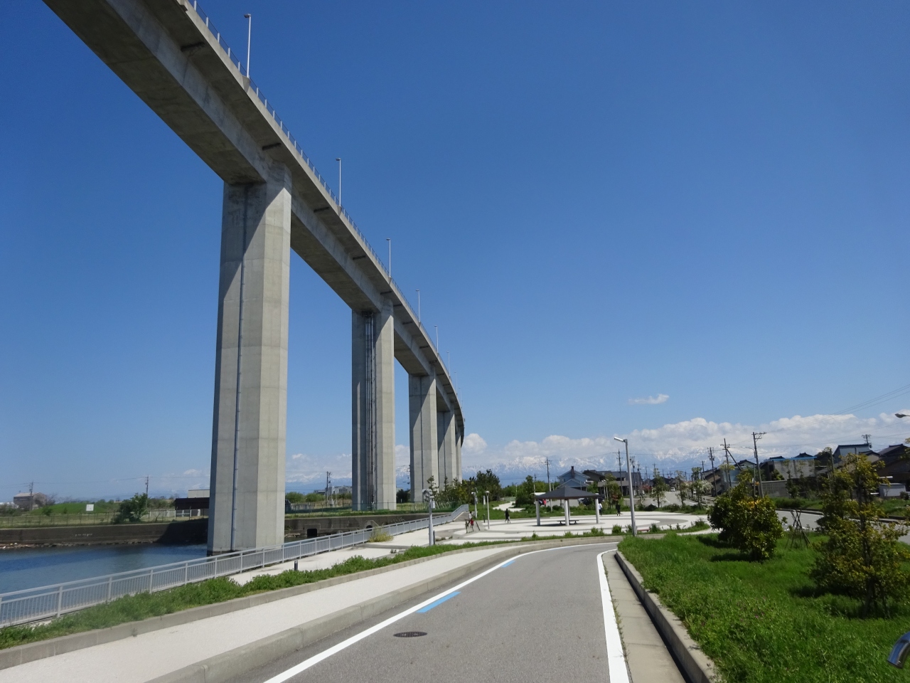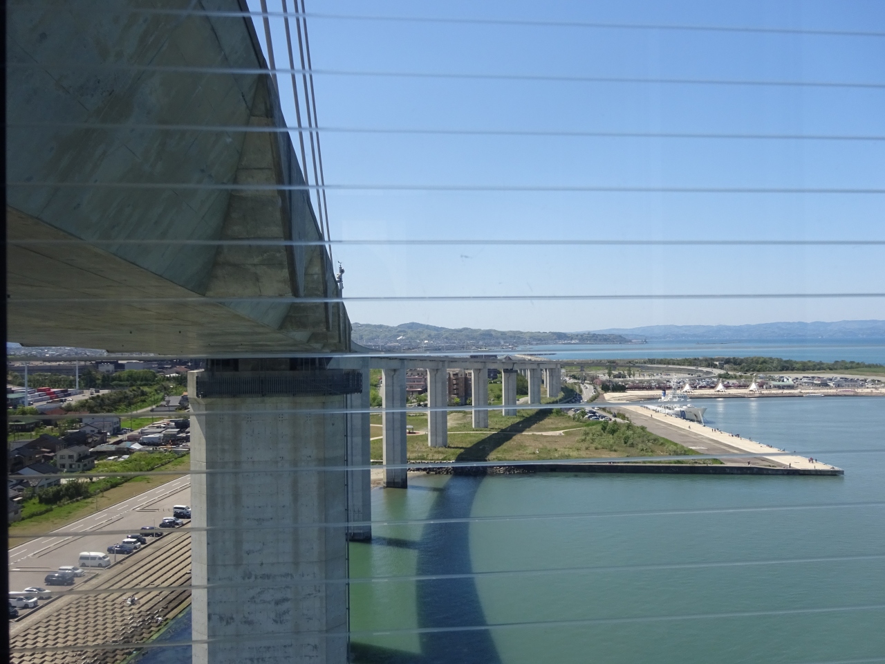 運良く快晴の澄みきった青空の中、青い海に跨がるひときわ目立つ大きな橋を見ることができ、とても感動しました。