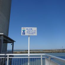 エレベーターで橋の中に上がり、全長480メートルの橋を歩いて渡ることができます。往復すると1㎞弱なのでいいお散歩になります。橋の上から海をガラス越しに見ることができとても気持ち良く片道はあっという間に渡れちゃいました。