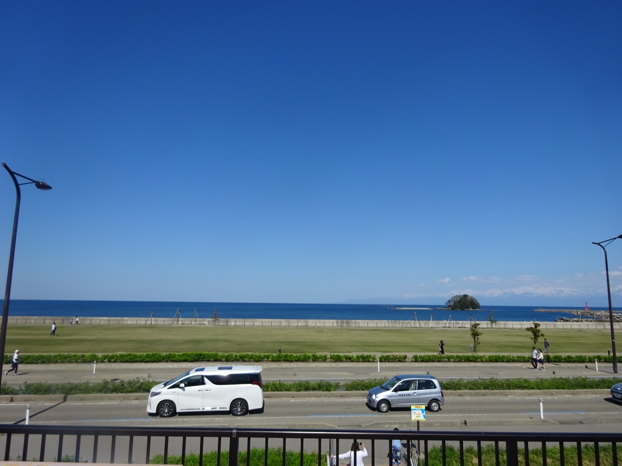 外で富山湾の絶景とさわやかな5月の風に吹かれて夢中でペロペロしました(*´▽`)y-。o○