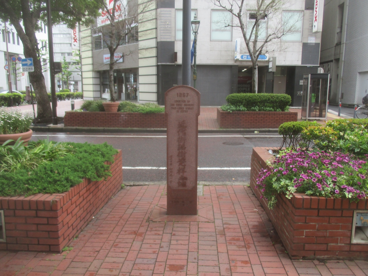 馬車道の各商店が店の前に柳と松の街路樹が植えたのが始まりから、横浜は日本の近代街路樹発祥の地とされています。JR関内駅のほど近いところに記念碑が立っていました。地面と花壇がレンガ調になっており、記念碑がまた同じような色なので見過ごしそうな感じでした。