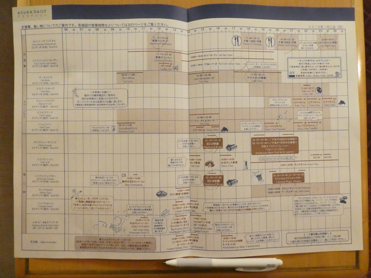 ほどよい大きさの船で大型客船ですが迷うほど大きくはないので地図は不要です。