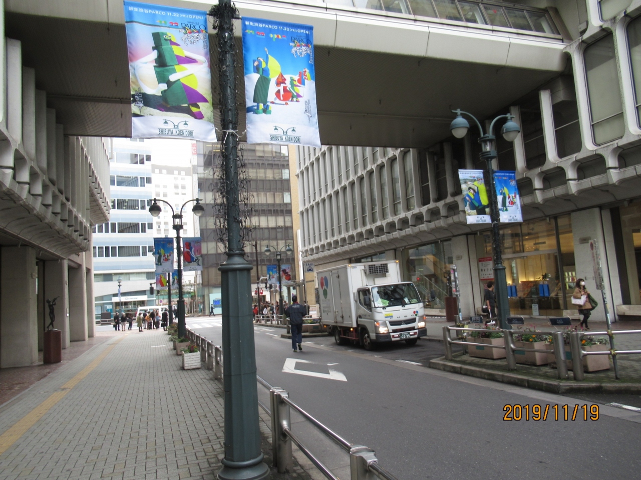 渋谷駅前のQFRONTから出発して、西武、モディ、区役所、APPLE、パルコ、