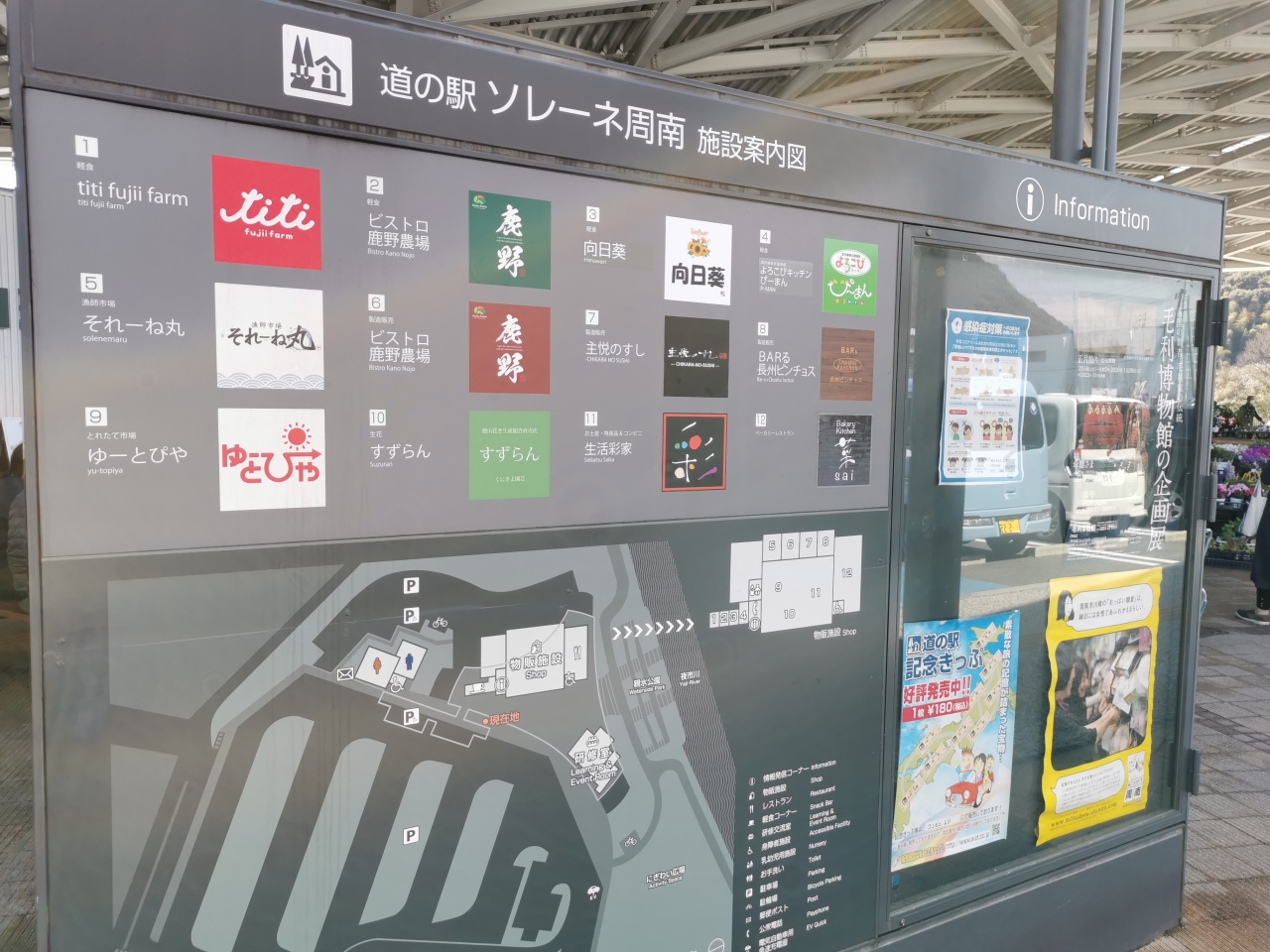 一人旅。山口県の国道2号線を走行中に休憩で「道の駅 ソレーネ周南」立ち寄り。かなり大きなみちの駅です。トラック、自動車を含めて多数の駐車スペースがあります。施設も大きい。地元で栽培のお花など多数販売。館内もお土産など多数。とにかく大きくてびっくりです。