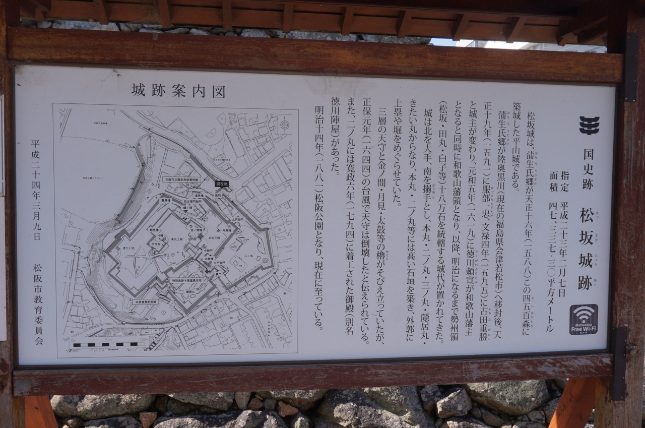 松坂城跡は、天正16(1588)年に蒲生氏郷によって築城された城跡。