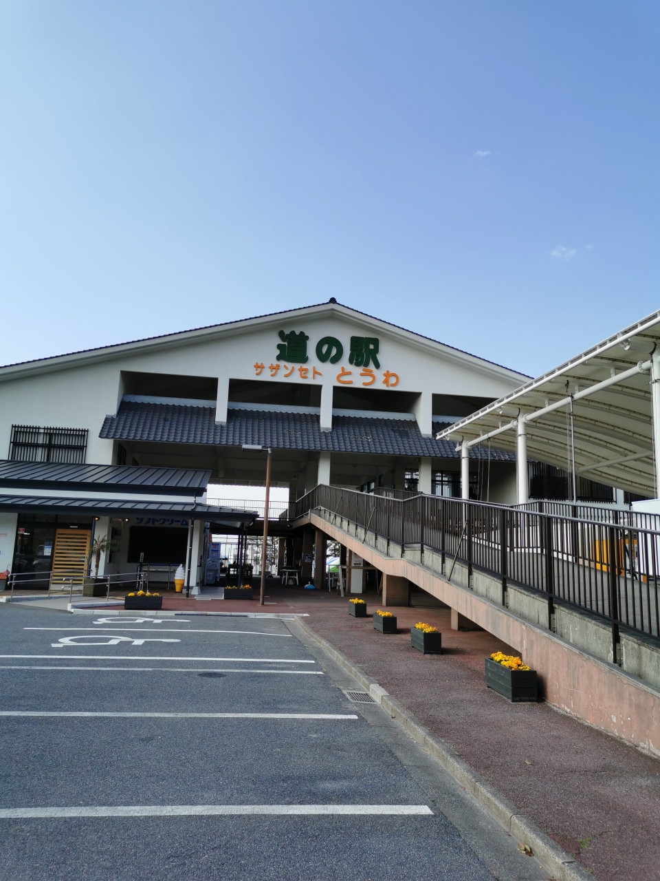 一人旅。陸奥記念館を目指して周防大島へ。周防大島は地図で見るとさほどではありませんが、実際に車で走ると大橋を渡って陸奥記念館まで1時間弱。とても遠い。帰り道に休憩に「道の駅 サザンセトとうわ」立ち寄りました。結構広い道の駅です。目の前は海。店内は地元の果物はお土産が販売されています。