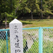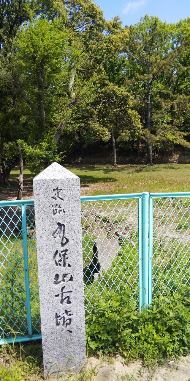 丸保山古墳は仁徳天皇稜の北西側にある古墳です。仁徳天皇稜の陪塚のひとつで、住宅街の真ん中にあります。お堀はありませんが、フェンスで囲んであり、立ち入りできないようになっています。「史跡 丸保山古墳」の石碑があります。仁徳天皇稜の外周沿いにあるので、遊歩道を歩きながら探してみましょう。