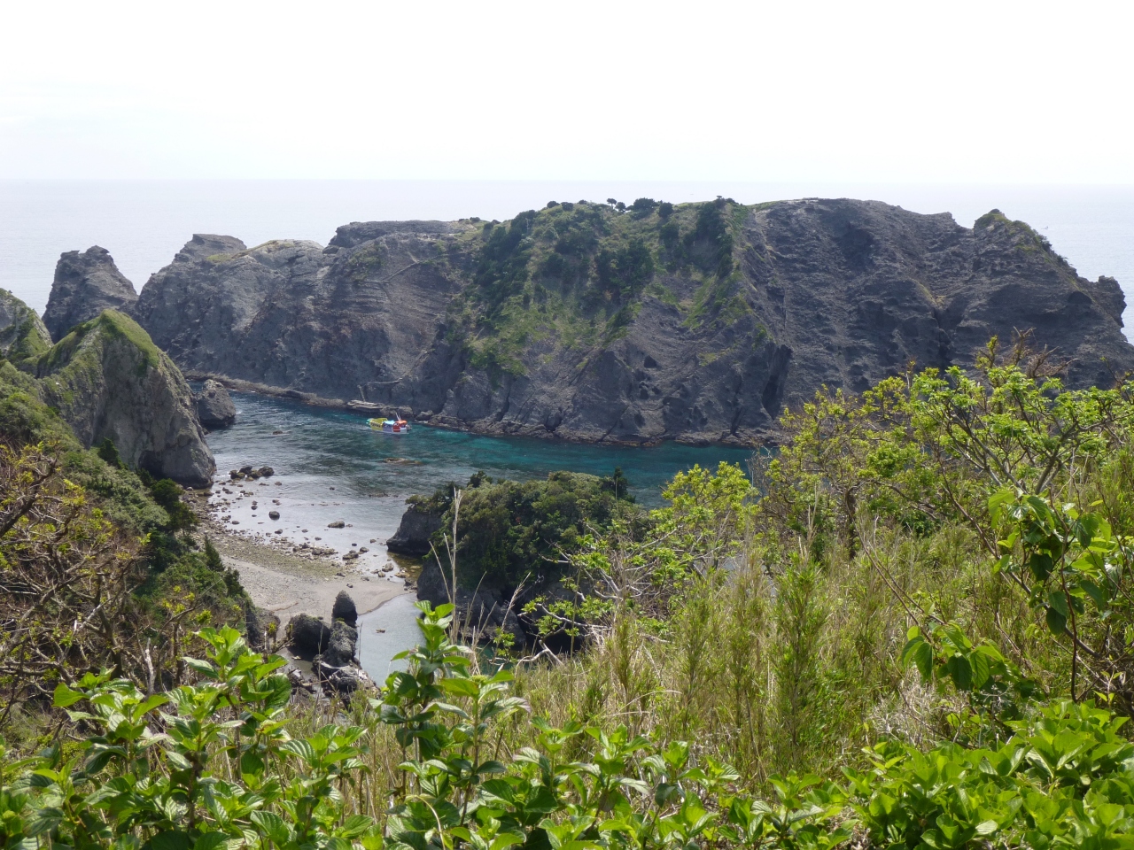 ここに来る前に石廊崎岬めぐりの遊覧船に乗りましたが、その時一周した大根島、ヒリゾ海岸などが眼下に一望。