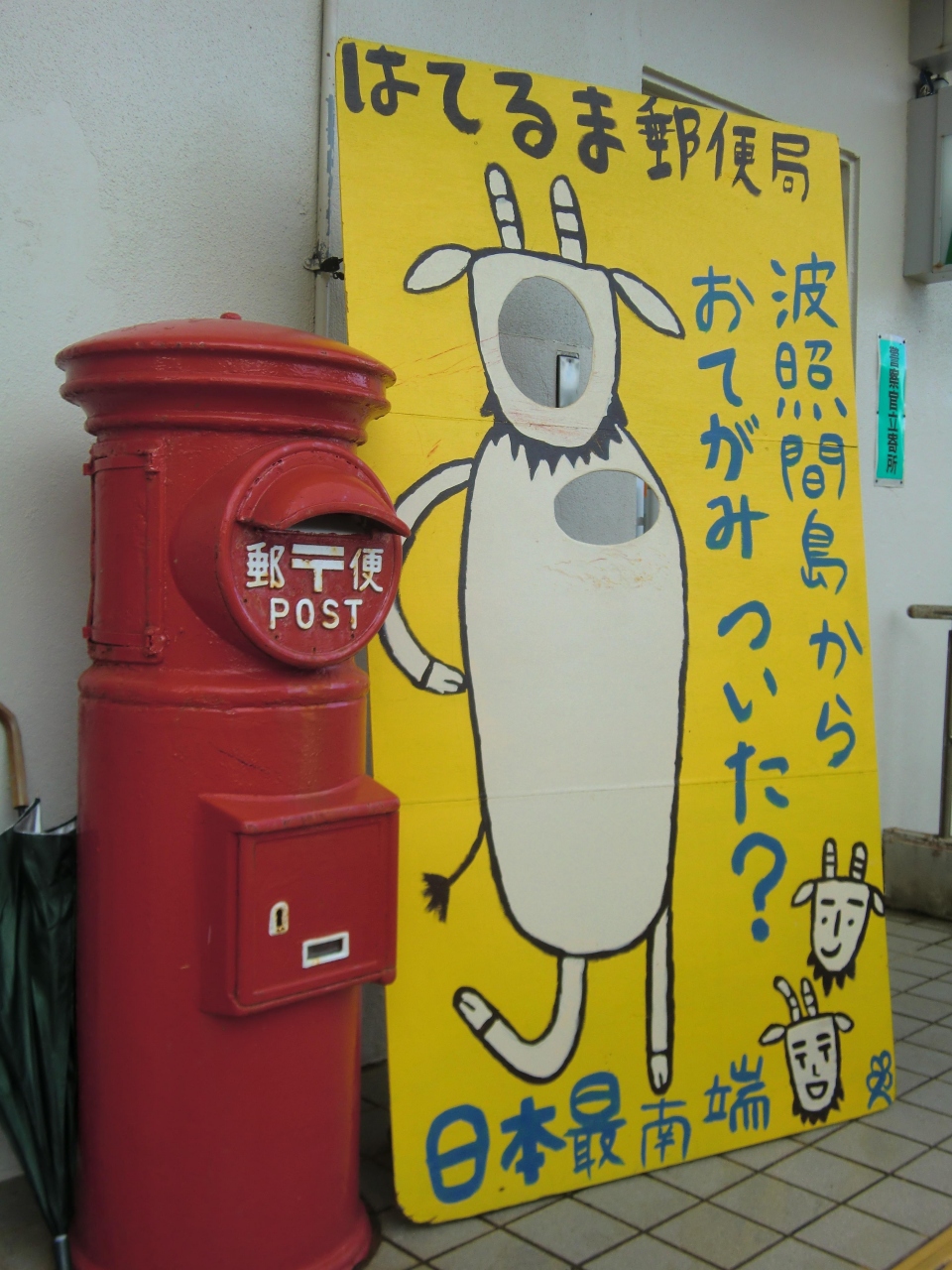 郵便局の前には、記念写真が撮れる看板もあり、顔ハメ式になっていました。