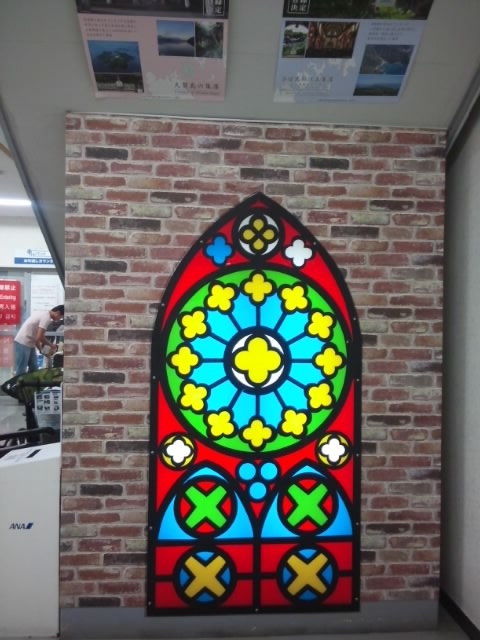 ステンドガラス、電気自動車のレンタカーがある空港