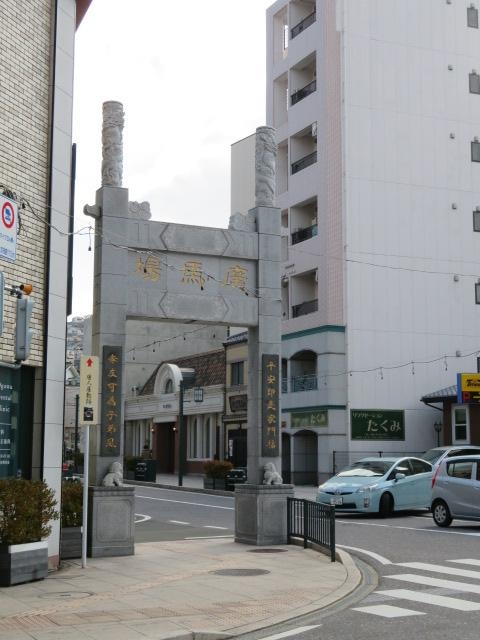 「この門は何だろう」とほとんどの人が思うでしょう。唐人屋敷への誘導門ということで、ここをくぐると、直進すると大門に行きつきます。下の方にちゃんと狛犬も座っています。誘導門ということで、大門よりも小さく控えめに建設されたんでしょうね。