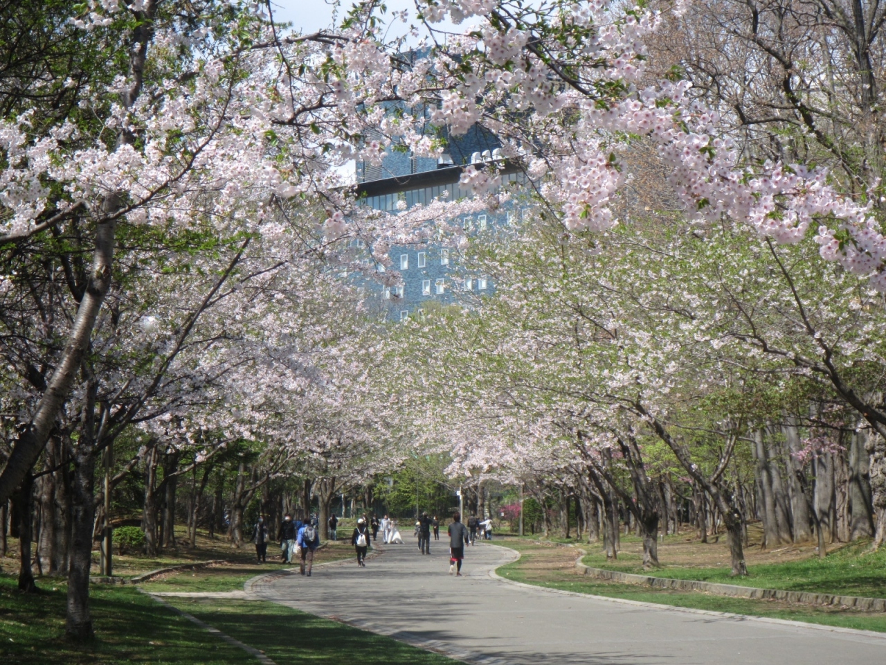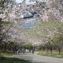 特に、地下鉄南北線中島公園駅から幌平橋駅まで続く園内のメインストリート沿いでは、ちょうどボート池の南側辺りから幌平橋駅付近まで桜の並木になっており、ソメイヨシノ、エゾヤマザクラのきれいな桜を見ることができます。