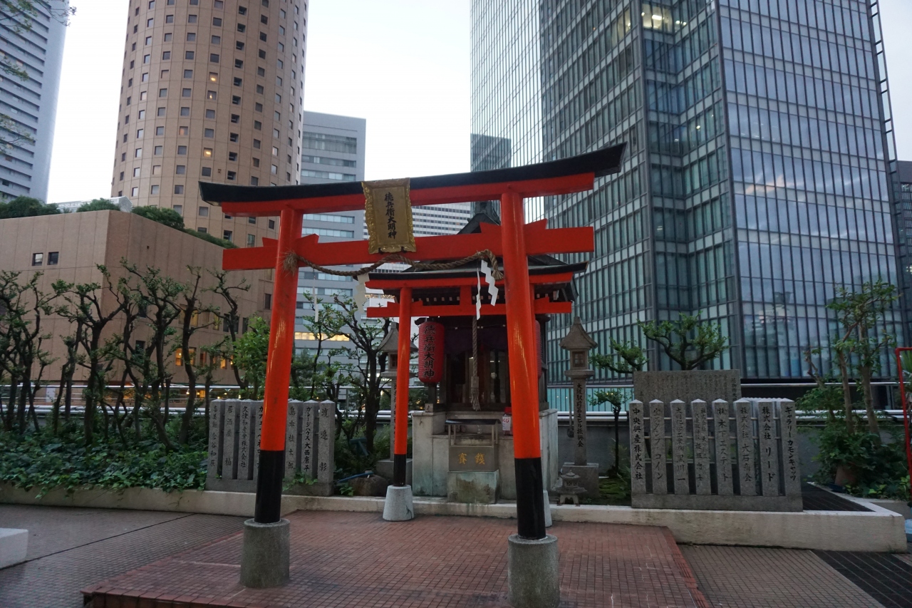 ただ、この周囲の高層ビルを見上げるようなロケーションがすごい。映画「天気の子」の神社も真っ青といった感じかな。ちなみに、徳兵衛は、曽根崎心中の徳兵衛さんです。