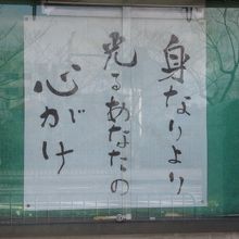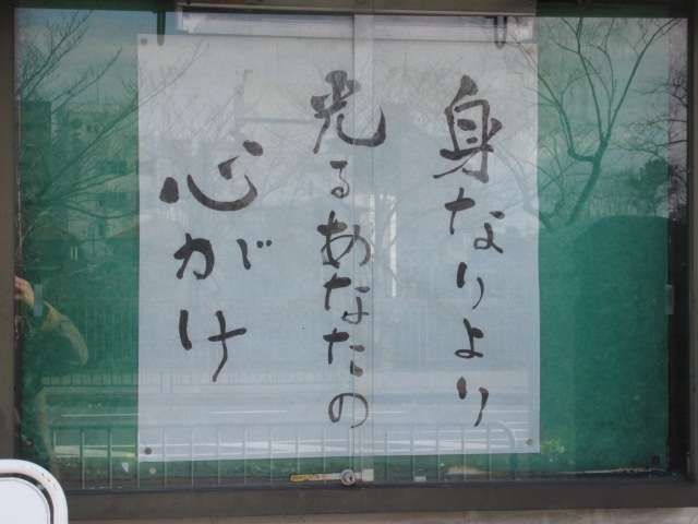 掲示板には「身なりより光るあなたの心がけ」と書かれていました。私もそうでありたいと思います。