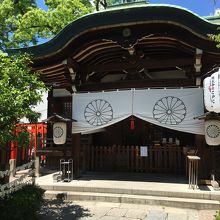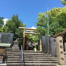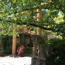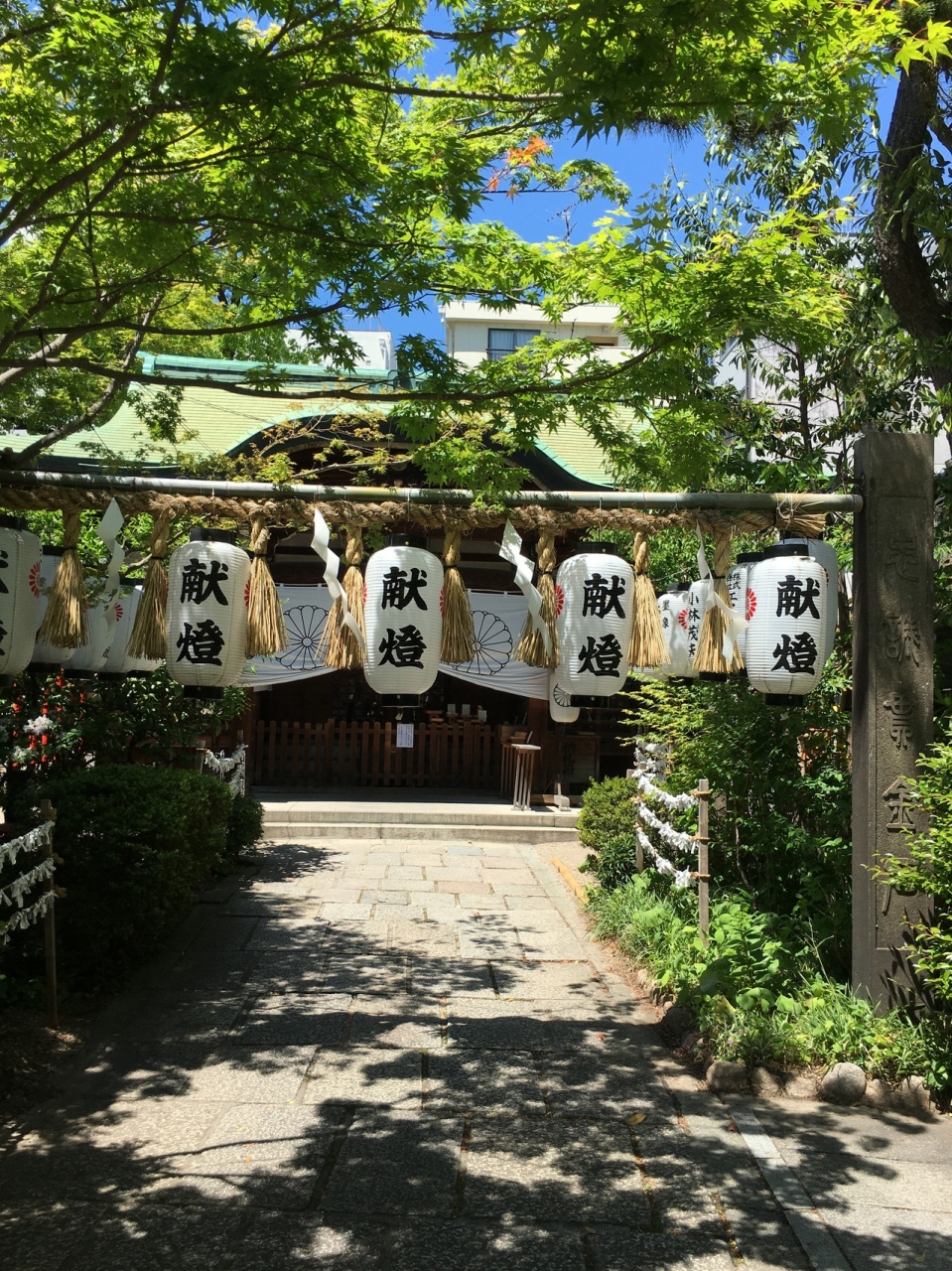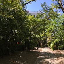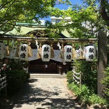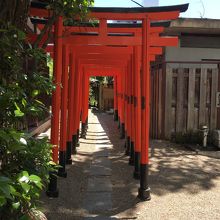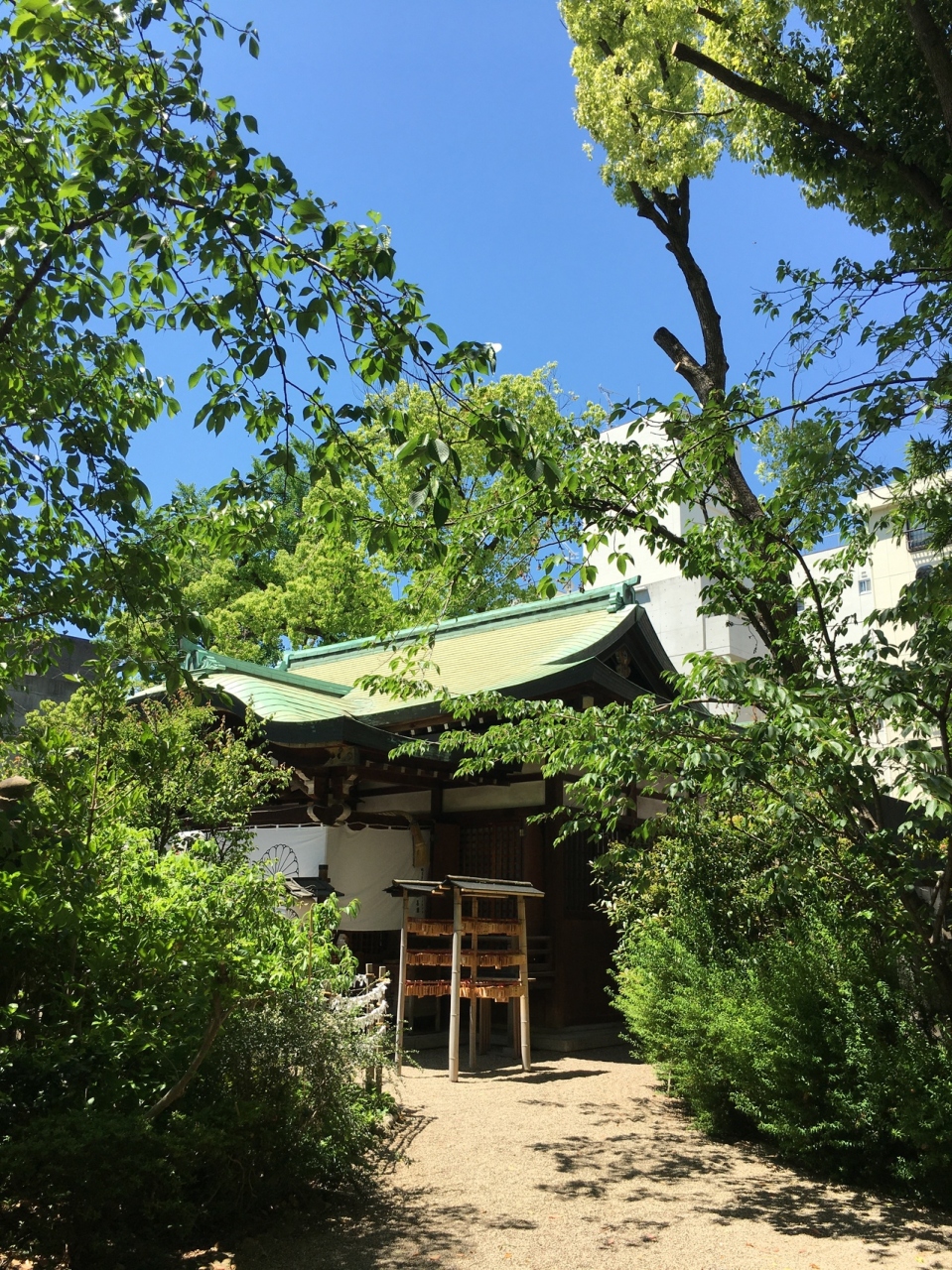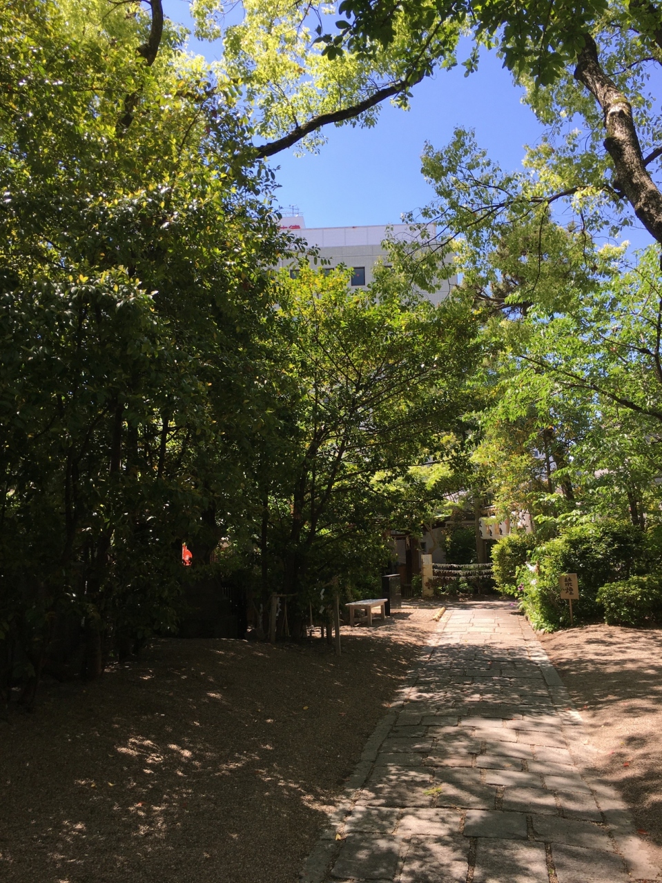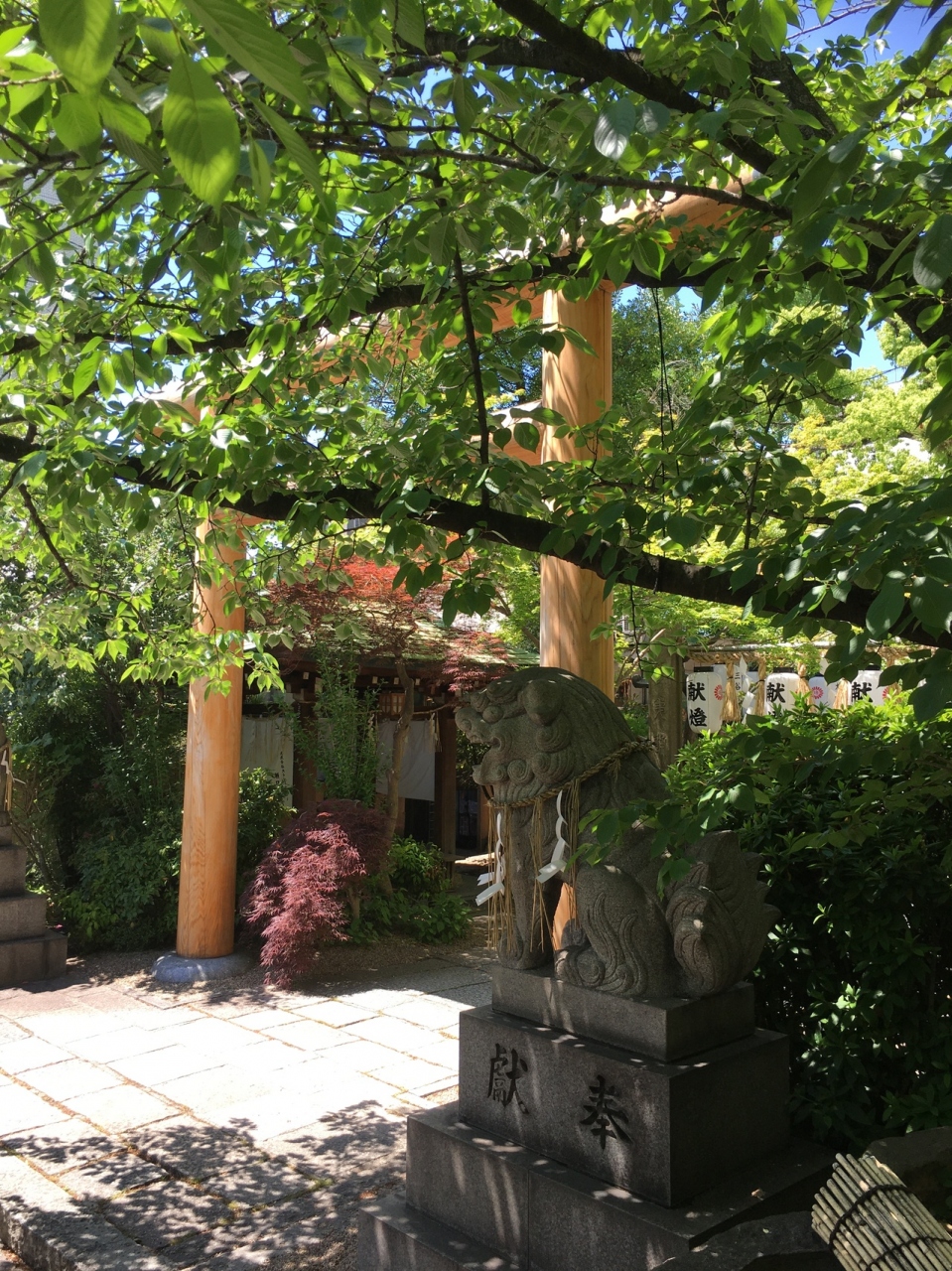 新緑が見事で歩道に木の枝がはみ出していました。境内に見どころが凝縮されているため、空間はあまりなかったです。本殿は何処にでも見かける神社の建物でしたが、横に赤い鳥居がたくさん連なった場所や小さな社等がいくつかあり、地面は小石を小さくしたようなものでした。