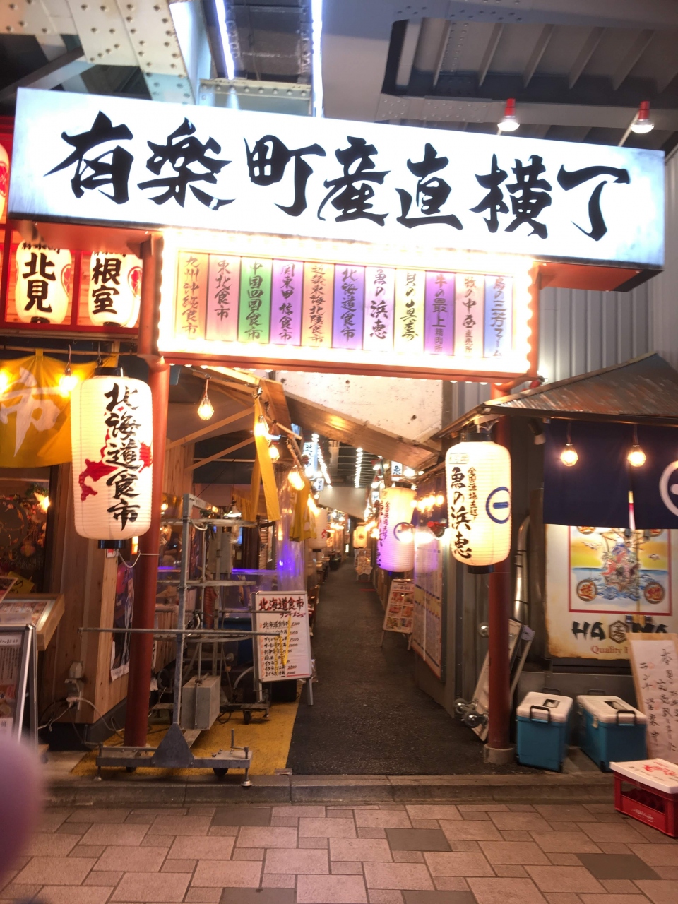 有楽町JR高架下にある飲食店街「有楽町産直横丁」は「魚の浜恵」「貝の真寿」「牛の最上」「豚の中西」「鶏の三芳」など生産者直結の専門素材酒場5店舗に加え、「北海道食市」「東北食市」「関東食市」「近畿東海北陸食市」「四国中国食市」「九州沖縄食市」など全国の地域B級グルメ6店舗をあわせて11店舗が終結した産直横丁になっています。良心的な価格設定でそれぞれに特色を生かしたメニューが並び、活気に満ち溢れていました。24時間オープン、年末年始も休まず営業というので、空いているのかを気にすることなく、昼から飲めるのが嬉しいところです。コンセプトがしっかりしているので、一時流行したテーマパーク的横丁シリーズとは一線を画す存在となっています。