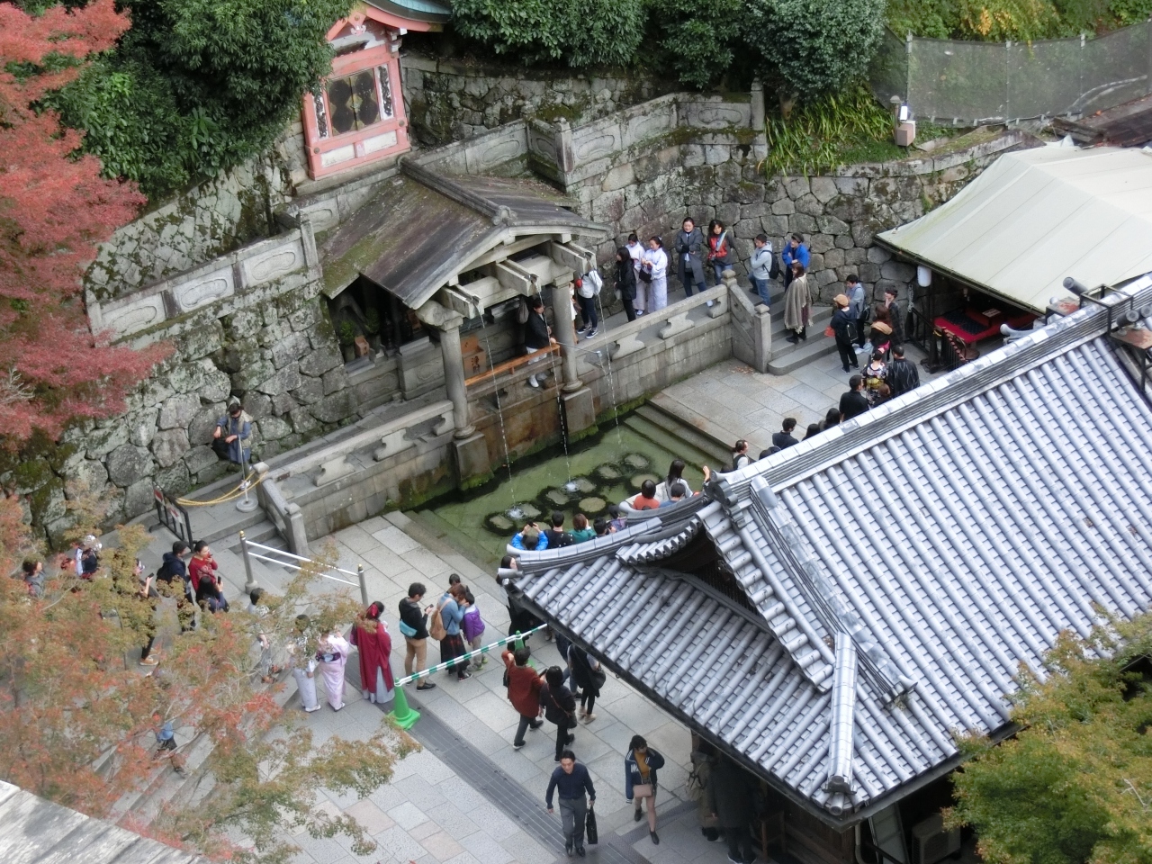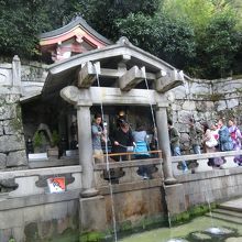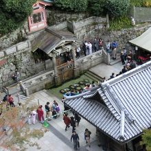 清水寺の本堂を参拝し道なりに進んで奥の院を過ぎて石段を下りていくと、音羽の滝に着きます。