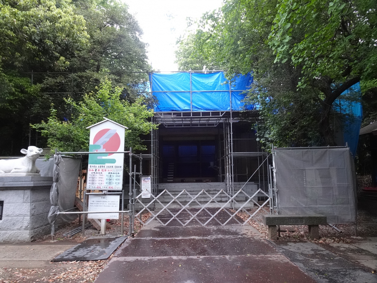 明治27年に建築された歴史ある拝殿は残念ながら改築工事中。手前に仮の拝殿が設置されていました。2020年末に竣工予定とのことで、どのような建物になるか楽しみです。