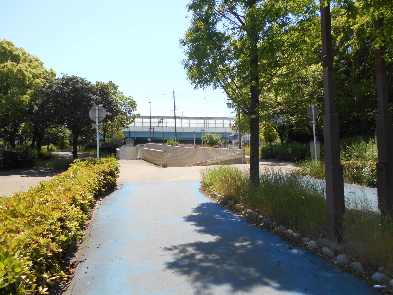 西淀川区にある散歩道です。4本の道が独立してついています。歩行者用が外側の2本、自転車用が内側の2本となっています。基本的には一方通行ですが、守らない人もいます。