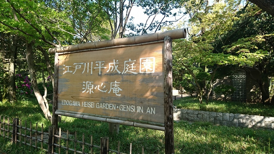 江戸川区北葛西3丁目の行船公園内にある日本庭園です。平成元年(1989年)に整備されたそうです。数寄屋造りの源氏庵が建ち、池や築山があり、見ごたえのある庭園です。もちろん入園料は無料。池の周りを散策すると気持ちも落ち着きます。