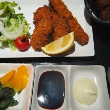 フライはいずれも衣がサクサク、中はジューシーに揚がっていて、食べ応えが。。