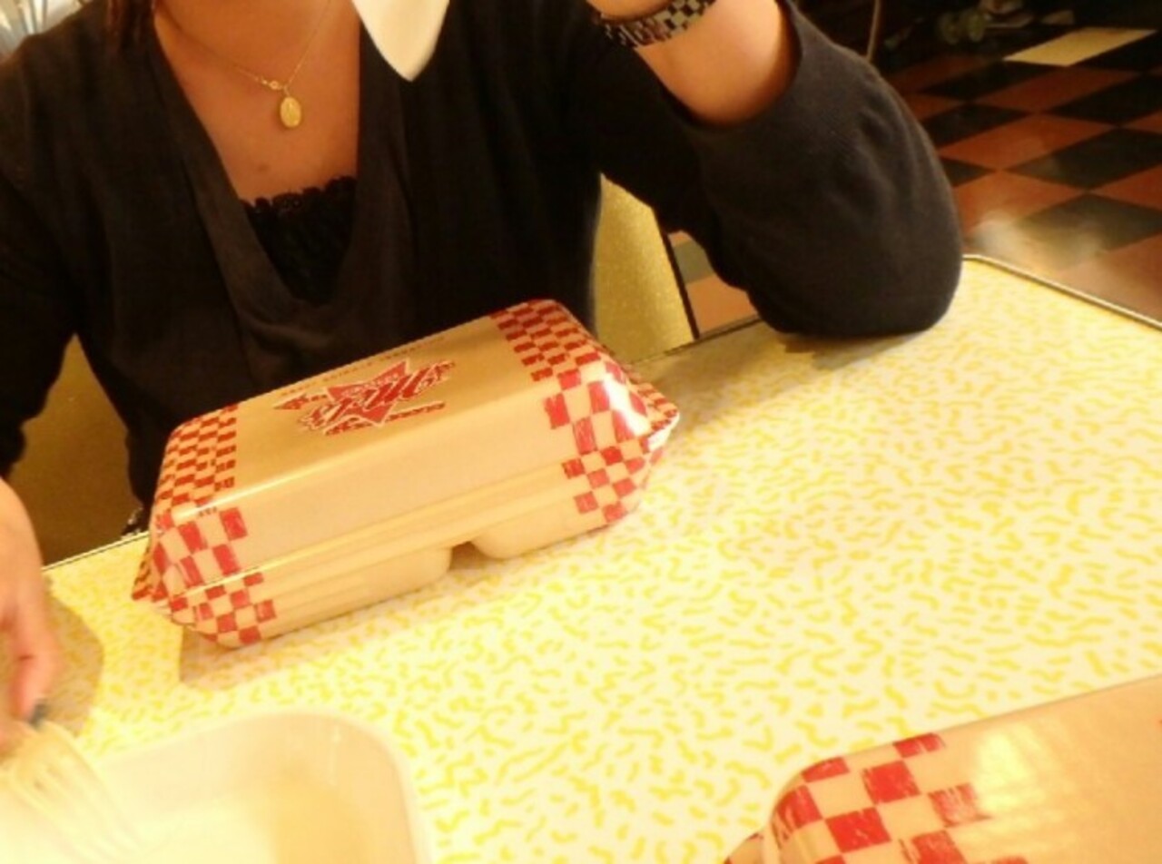 中はハンバーガーショップとなっていて、ハンバーガーやポテトなどの食事ができます。