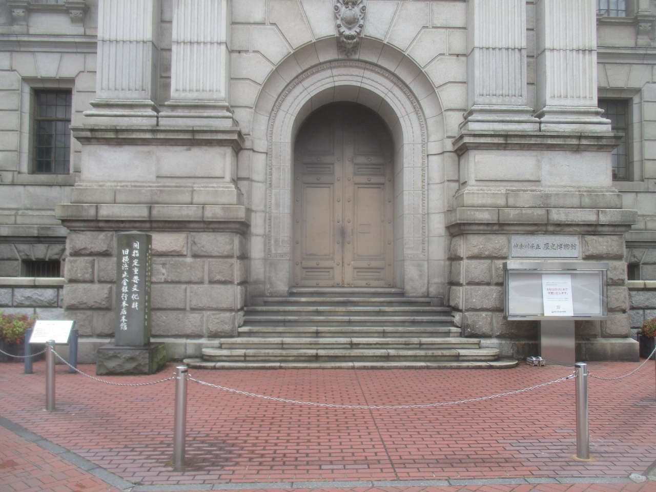 旧横浜正金銀行本店だった建物を使っているので立派な博物館です。大通りに面していないので、どこにあるのかちょっとわかりにくいです。JR関内駅から馬車道を赤レンガ倉庫方面に向って進み、左手に注意していれば、ビルの間にクラシックな建物が顔をのぞかせています。馬車道周辺には重厚な造りの近代の銀行建築や洋風ビルディングが点在しているので、近代建築めぐりのコースになっています。博物館の展示物に興味なかったり、時間がなければ、ミュージアムショップを先に見るのがいいと思います。