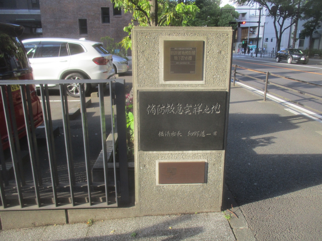 横浜情報文化センターと横浜都市発展記念館の駐車場の一角にありました。横浜市認定歴史的建造物である旧居留地消防隊地下貯槽槽がありました。1893年(明治26年)に製造された煉瓦造りの貴重な建築物で、ここが発祥の地であることが分かりました。