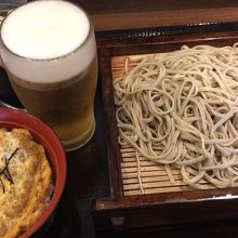 船橋駅南口からすぐの場所にある蕎麦と生冷麦のお店です。食券制でセルフサービスとなっています。ほとんどがカウンター席なので一人でも入りやすいです。ミニ丼ぶりと麺のセットもあって安価でボリュームありました。太目のお蕎麦も美味しかったです。エビスビールのジョッキが220円も魅力でした。