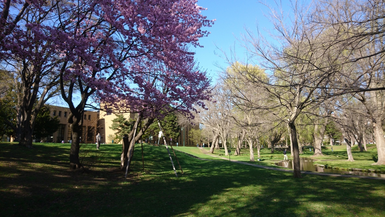 新型コロナウイルスの感染拡大を防ぐための外出自粛の中、買い物のため北海道大学の構内を通りました。いつもだと車で買い物に行くので通りませんが、運動のために歩くことにしました。今までは、春になると当然のように桜を見て、当然のようにハイキングに出かけていましたが、今年はその当然が奪われた感じがします。でも、それに耐えて、来年、満開の桜の下で花見ができるよう頑張りましょうね。