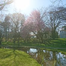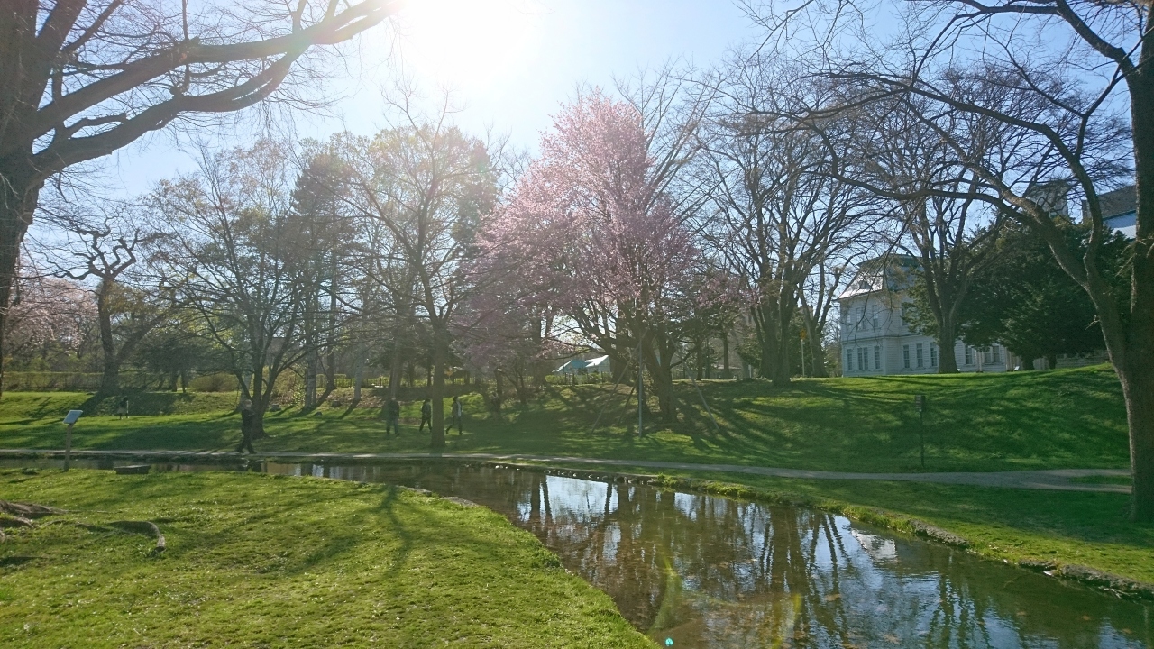 北海道大学の中を流れる川です。春になるとこの川の周りでお弁当を広げる家族連れの姿が見られますが、今年は少ないです。緑の中に桜のピンクが映えます。やはり水辺は良いなと感じます。水源は北海道大学正門付近で、キャンパス内流れ、環状通と石山通の交差点そばで地下に入る不思議な川です。来年はこの川の周りにたくさんの家族連れが訪れますように。