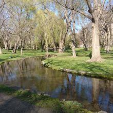 北海道大学の中を流れる川。