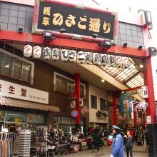 浅草寺の境内の中でも、本堂より奥のほう、言問通りへ抜けるルートにあたる商店街です。