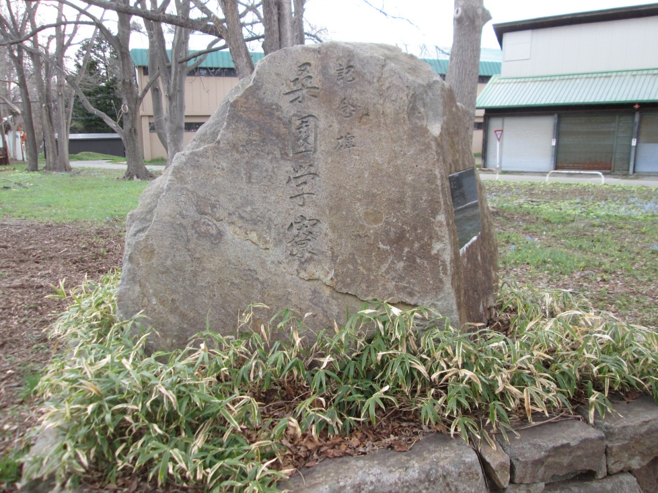 昭和58年までここに桑園寮があった記念碑で、記念碑には「桑園寮は昭和24年に別の場所に設置され昭和36年に現在地に移転、昭和58年に廃止」と刻まれていました。