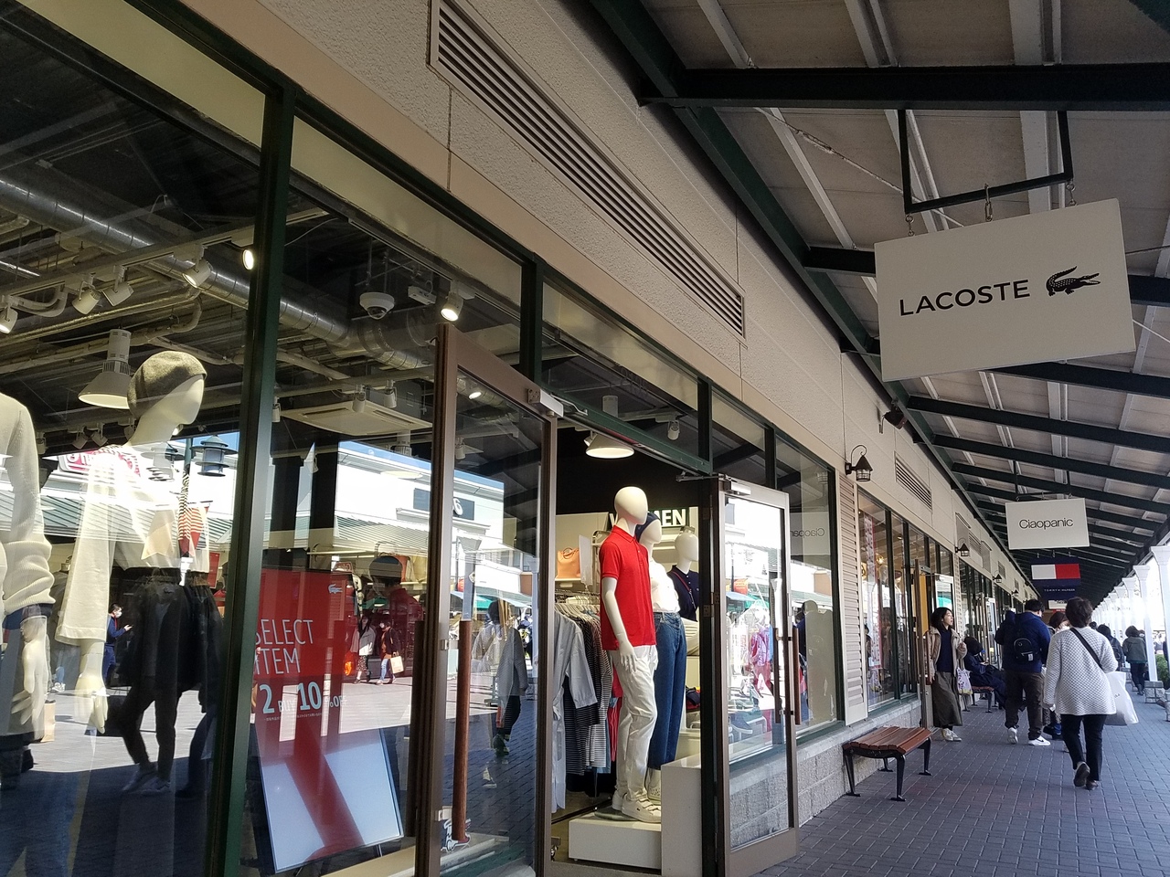 ラコステは、ワニのマークとカラフルさが特徴のフランスブランドで、御殿場プレミアムアウトレット内には、イーストゾーンの駐車場寄りにあります。メンズ、レディース、ポロシャツからワンピースまで品揃え豊富です。個人的にお気に入りなので、ついつい長居してしまいました。