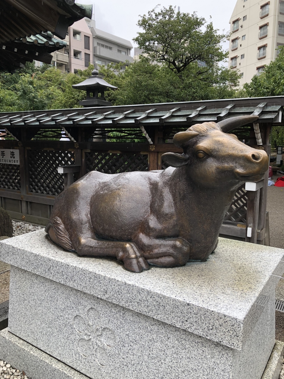 天満宮の牛は多くの人に撫でられてピカピカ。