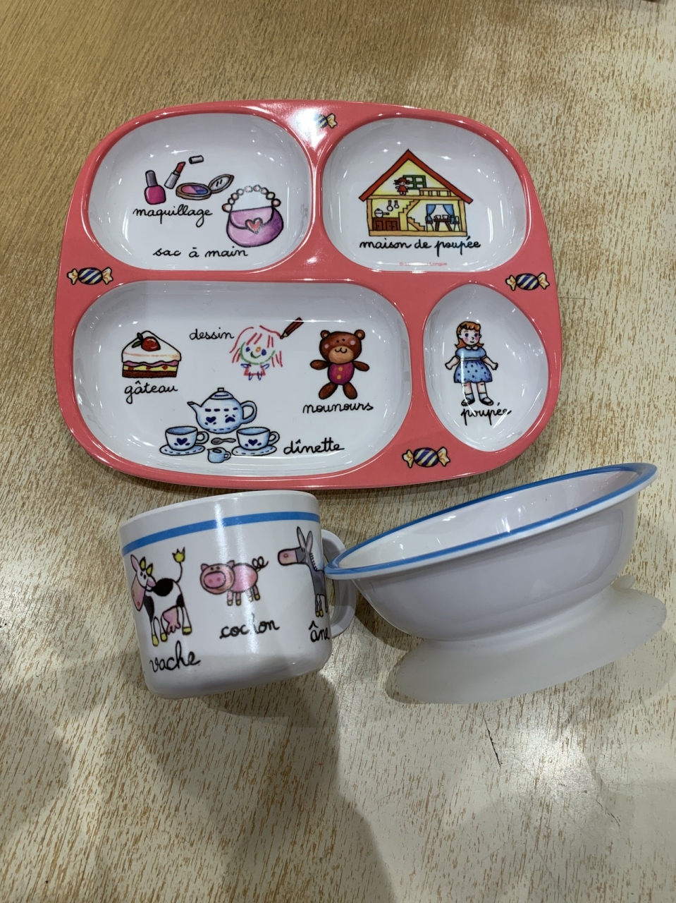 友人の赤ちゃんに誕生祝いとしてこちらで赤ちゃん用の食器セットを購入しました。かわいいデザインで売れ筋なのか在庫が少なく取り寄せていただきました。おわんは吸盤が付いているためテーブルに吸い付き赤ちゃんが触ったくらいでは動きません。