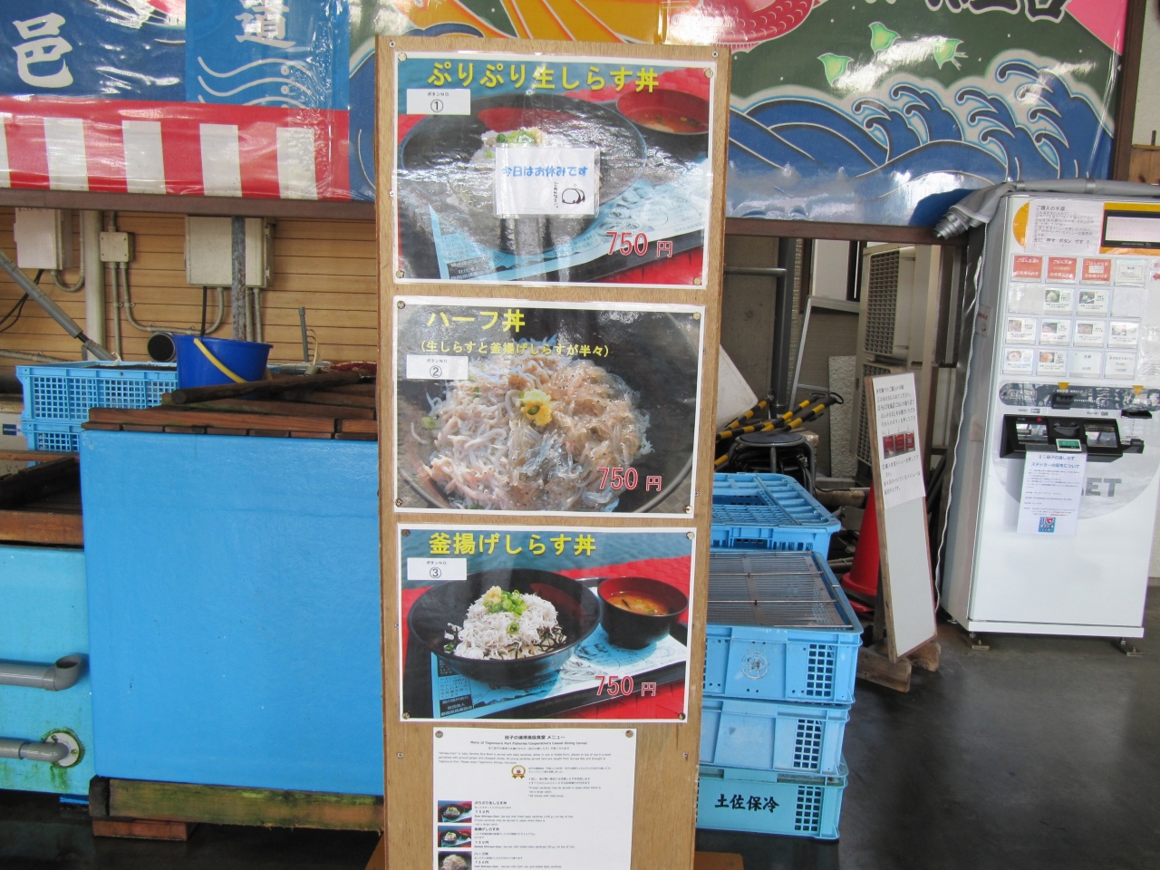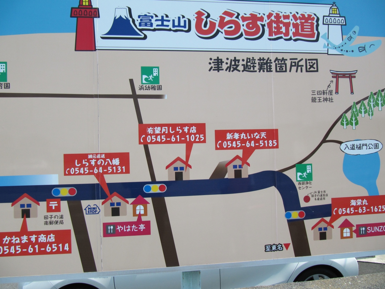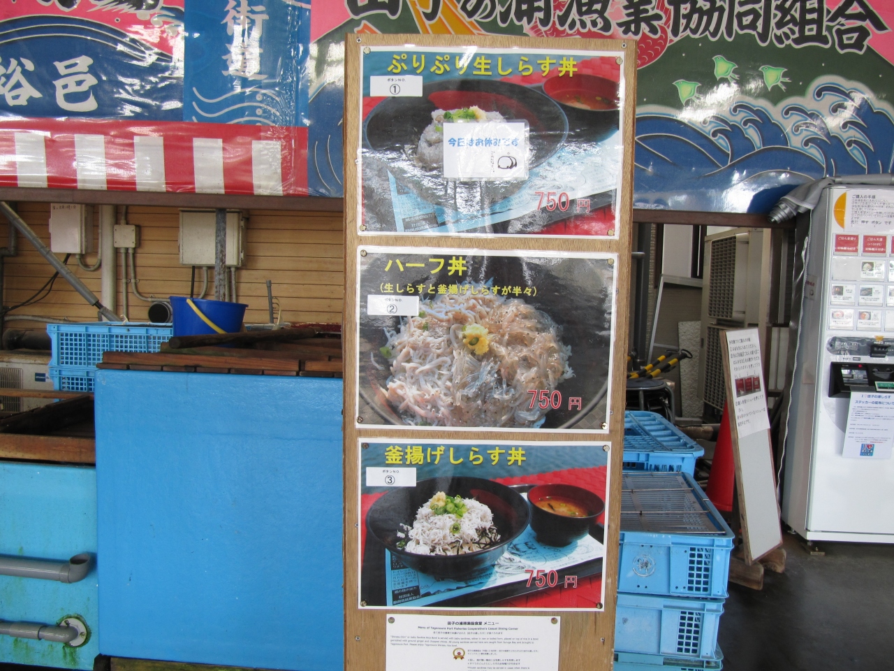 この辺りは、富士山しらす街道として有名です。「田子の浦港漁協食堂」でネット検索すると「漁協食堂からのお知らせ」にて生しらす漁の状況が確認できます。この日は生しらすと釜揚げしらすが半分ずつのハーフ丼を注文。ごはん少なめで750円でとても美味しかったです。冷凍といえども鮮度抜群の生しらすを水揚げ後に急速冷凍しているので品質が安定していて獲れたてと何ら変わらない鮮度と感じました。屋根はあるが壁がない漁港食堂は涼しい風が吹き何とものどかで良かったです。営業時間は10時30分より。