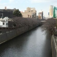 駅前の坂をおりきったところにある目黒川に架かる橋です。