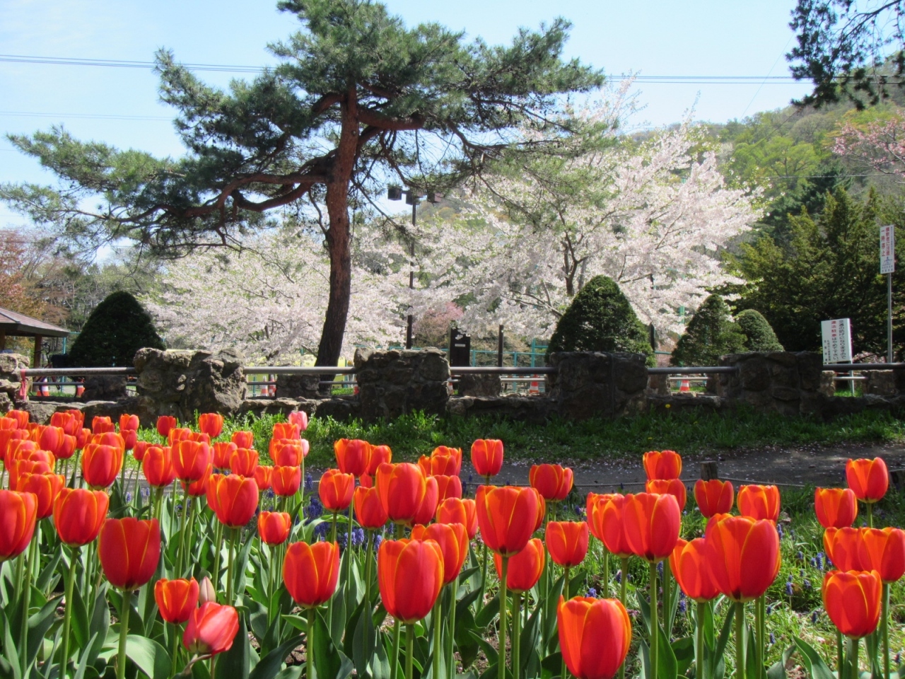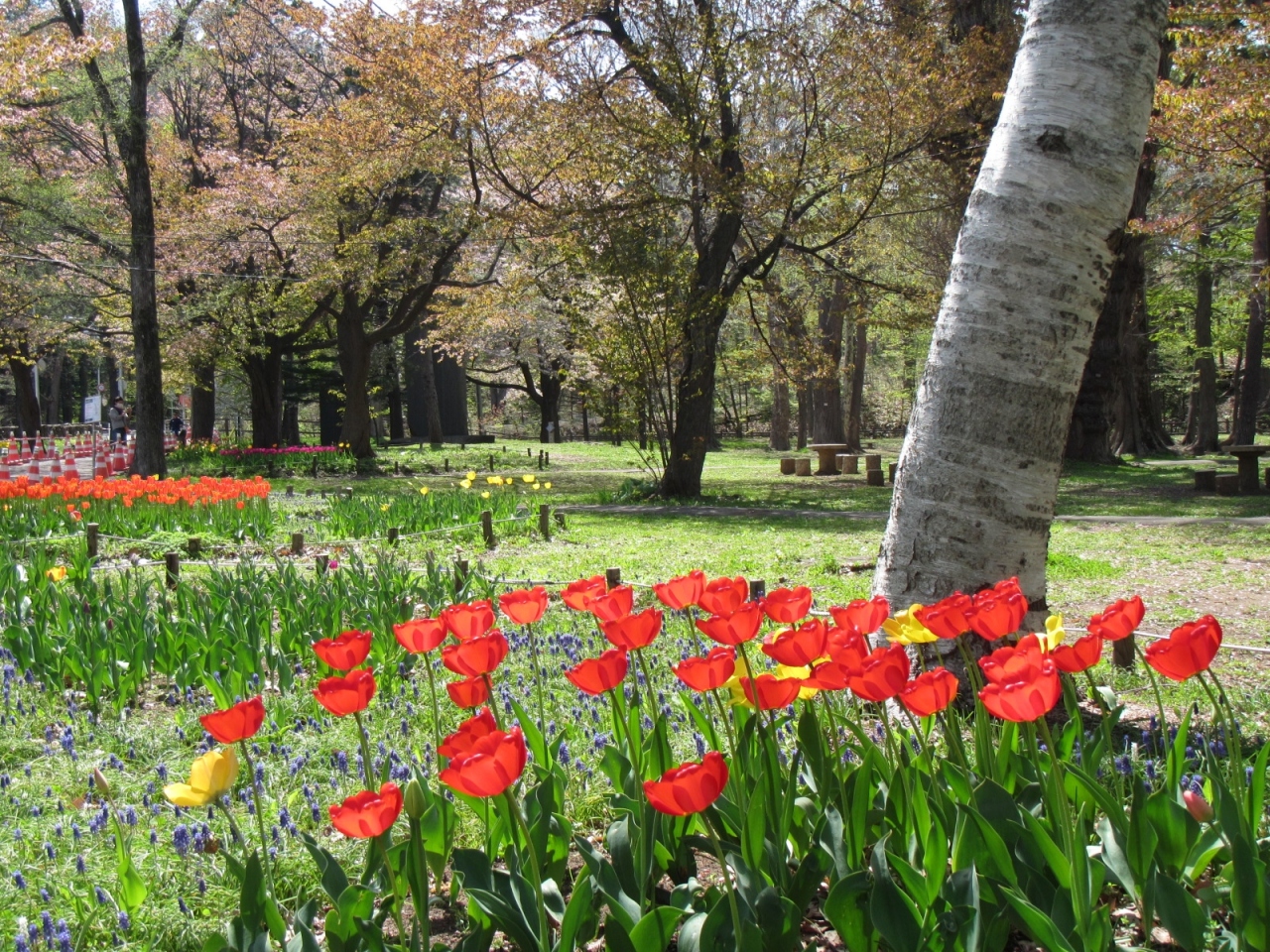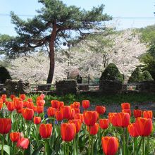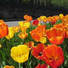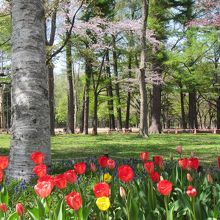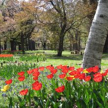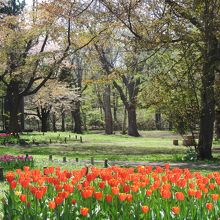 付近の園路沿いのチューリップがきれい(5月10日前後)