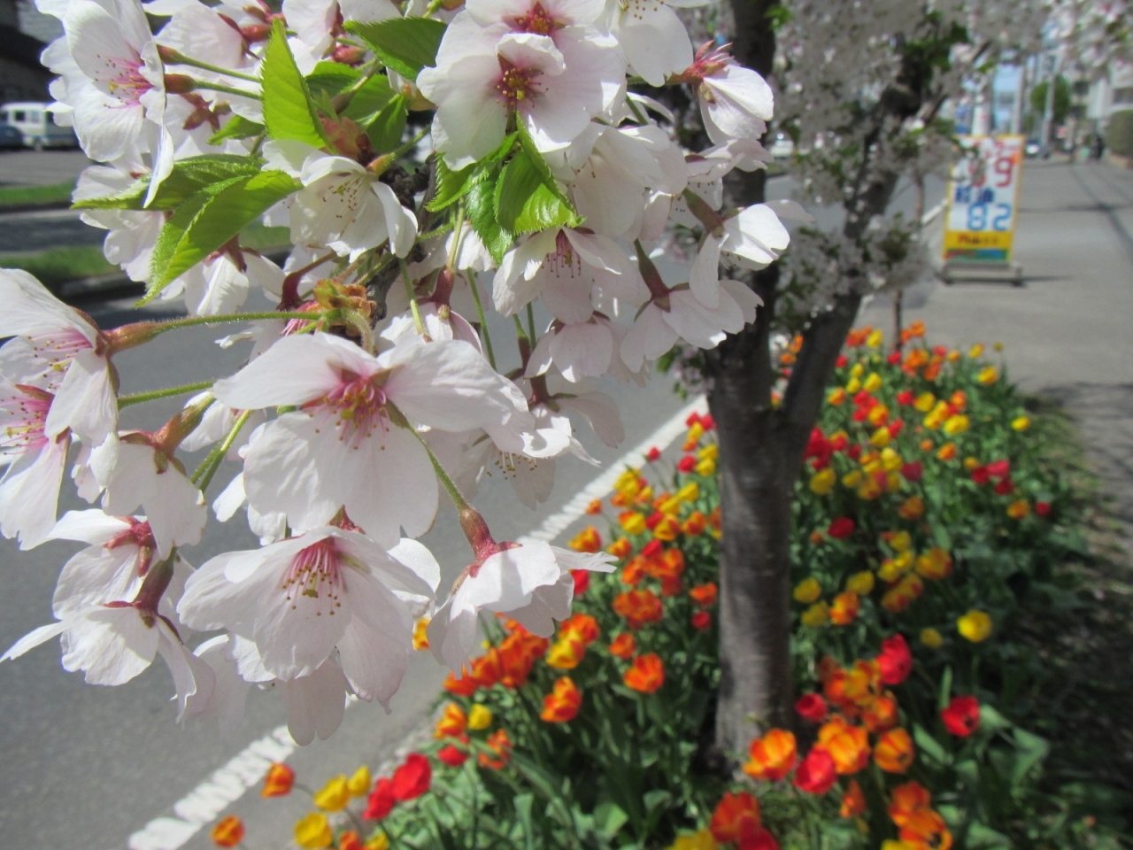 エゾヤマザクラはほとんど散っていますが、ソメイヨシノがまだ咲いていることもあり、付近の桜と合わせて美しいコラボレーションを楽しむことができました。